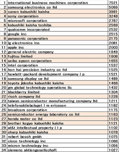WEBを見ると、ブルームバーグの 記事で、IBMが2014年の米国特許 取得数で22年間連続1位になった というのが出ていますね。 IBM22年連続の首位、米特許取得件数-3位にキヤノン - Bloomberg 記事では上位10社しか出ていま せんので、私のほうで、おまけの…