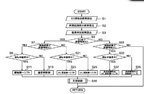 前回の続きです。 ・ 特開2008-305421 車両用走行支援装置 トヨタ自動車株式会社 【課題】 障害物検出手段としてレーダと 画像認識に加え、運転者の脇見検出 手段を用いて走行支援を行う車両用 走行支援装置において、各検出手段の 検出結果に応じた適切な支…