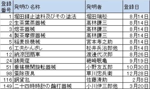 前回の続きです。 今回はどんな技術分野が多かった のかというのを見て行くわけですが、 その前に、最初の日に出願された、 そのほかの登録特許を見てみましょう。 わかりやすいように、この前と同じ表を 貼り付けておきます。 まずは、工夫かんざしですが、…